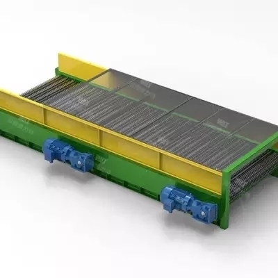 星盤篩主要用于彈跳篩、碟盤篩滾動篩下物的精細(xì)分揀。物料在旋轉(zhuǎn)的星爪受料面被擊打散開并做跳躍翻滾運(yùn)動,小于星爪間隙的無機(jī)物料被分離。可分離生活垃圾、餐廚垃圾中砂石、玻璃等細(xì)小顆粒惰性物資。