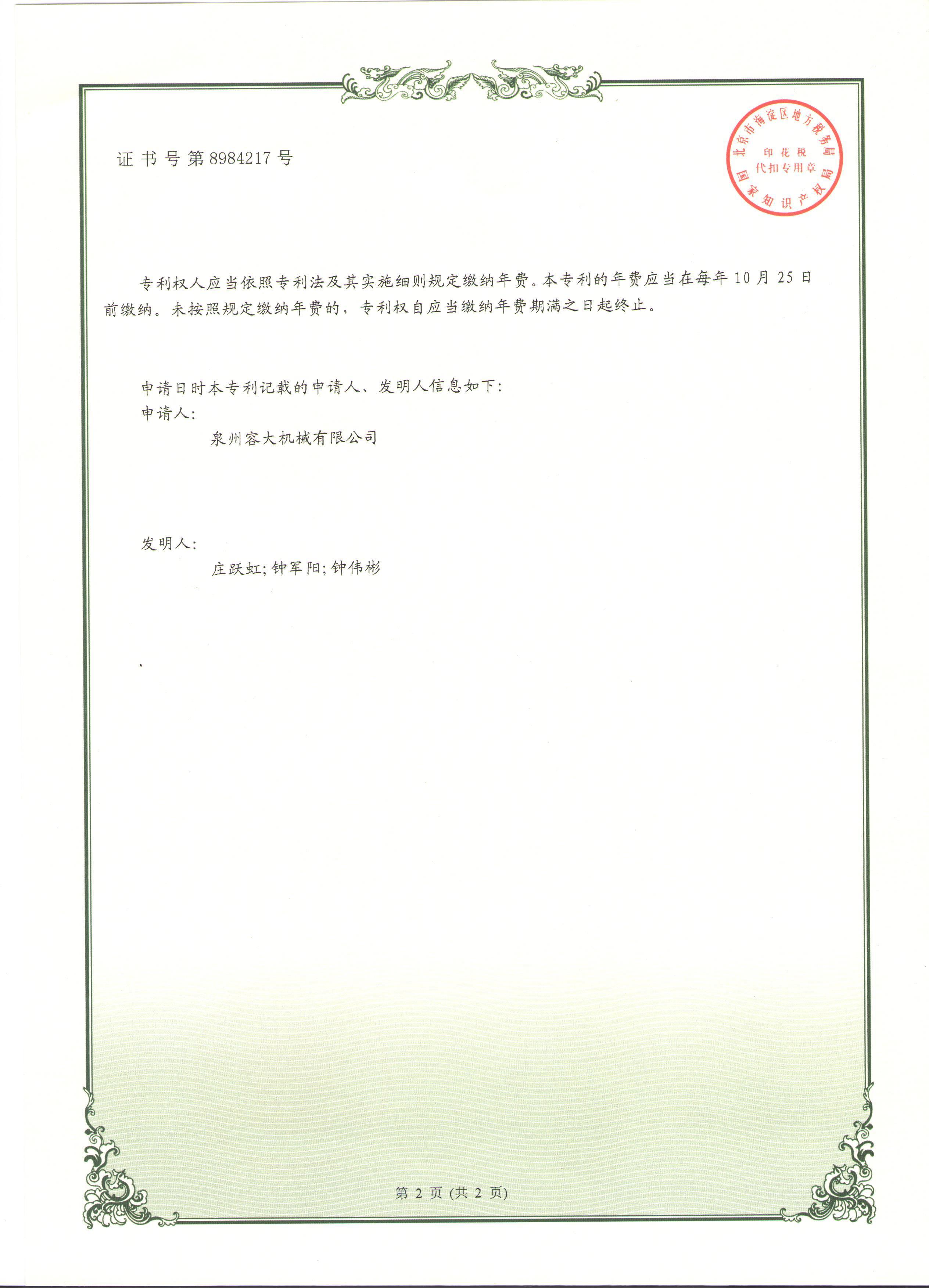 您的位置: 泉州容大機械有限公司 > 專利證書 > 接頭纏繞機